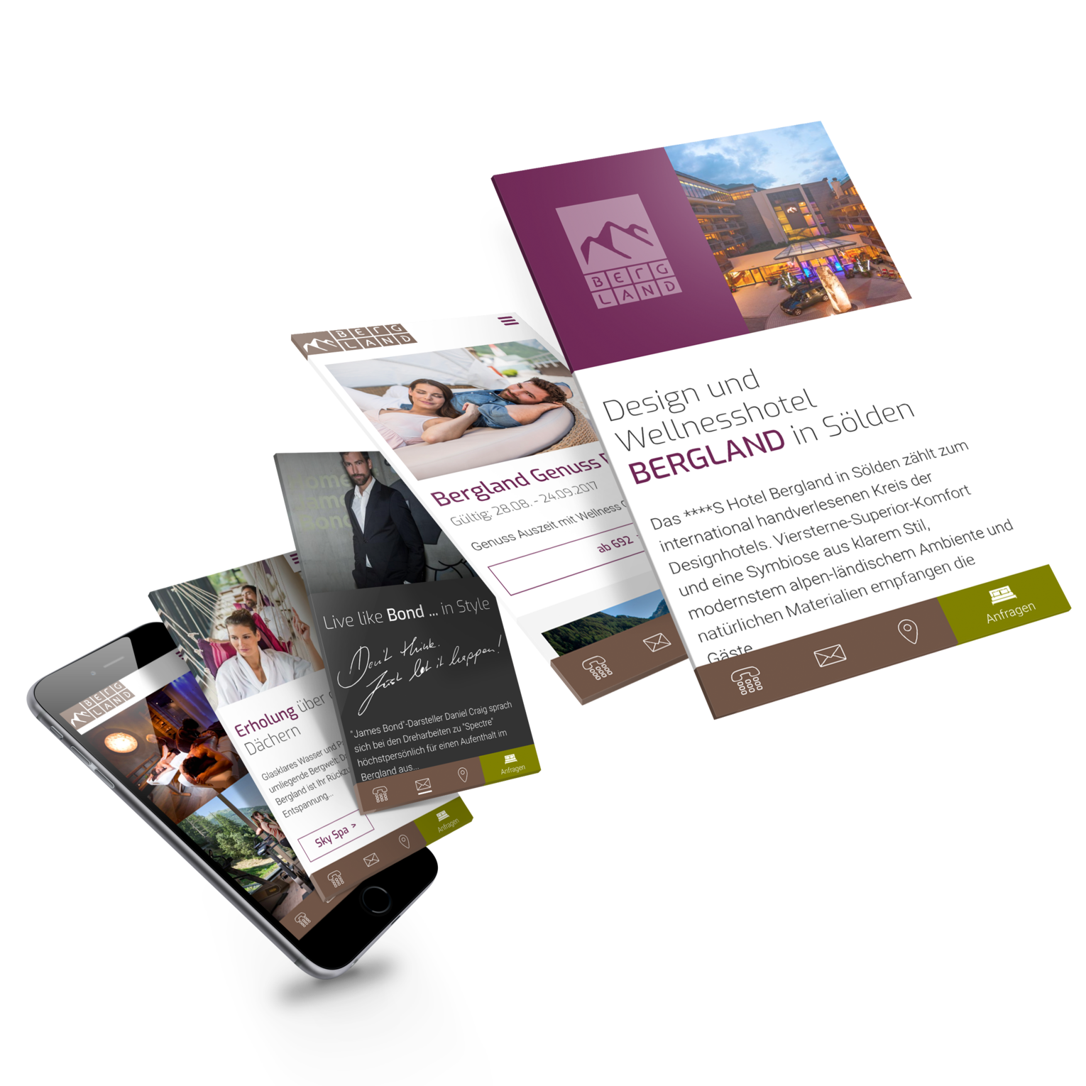 Als Designhotel haben die Betreiber des Bergland Sölden besondere Ansprüche in Sachen Optik. Auch beim Design der Website lag deshalb das Augenmerk darauf, einen außergewöhnlichen Ersteindruck zu hinterlassen. Der Magazin-Charakter spiegelt die vielen Elemente des Hauses wider und sorgt so für einen individuellen Auftritt, der sich von gewöhnlichen Hotel-Websites abhebt und nach aktuellen Bedürfnissen befüllen lässt.